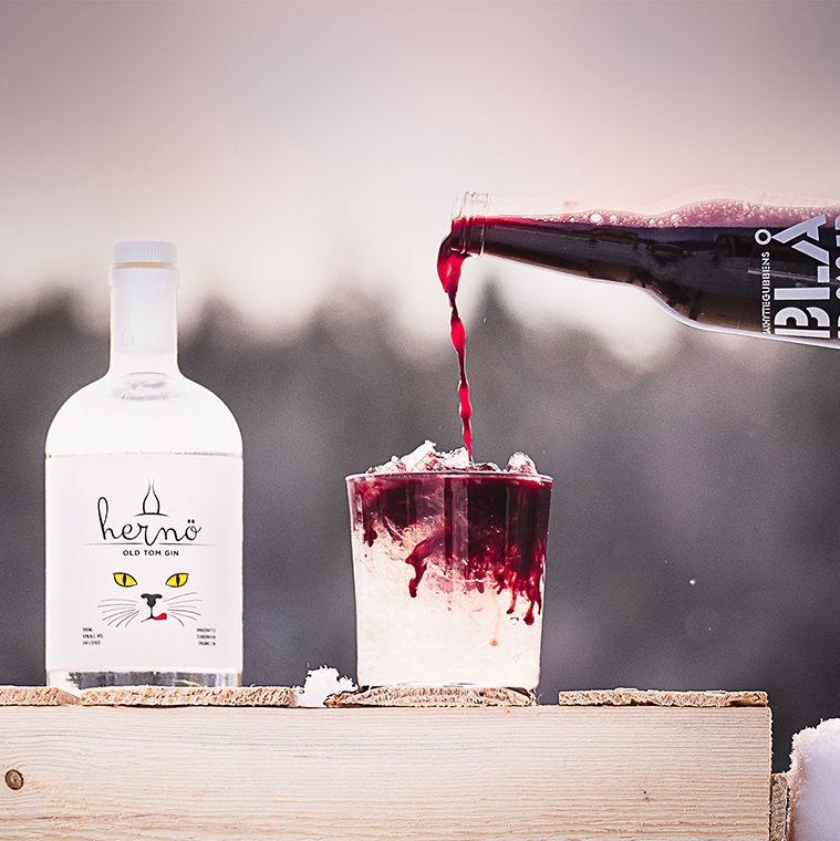 Shake Hernö Old Tom Gin, simple syrup and fresh lemon juice with ice. Strain into a glass filled with crushed ice and drizzle 100% Blåbär on top.